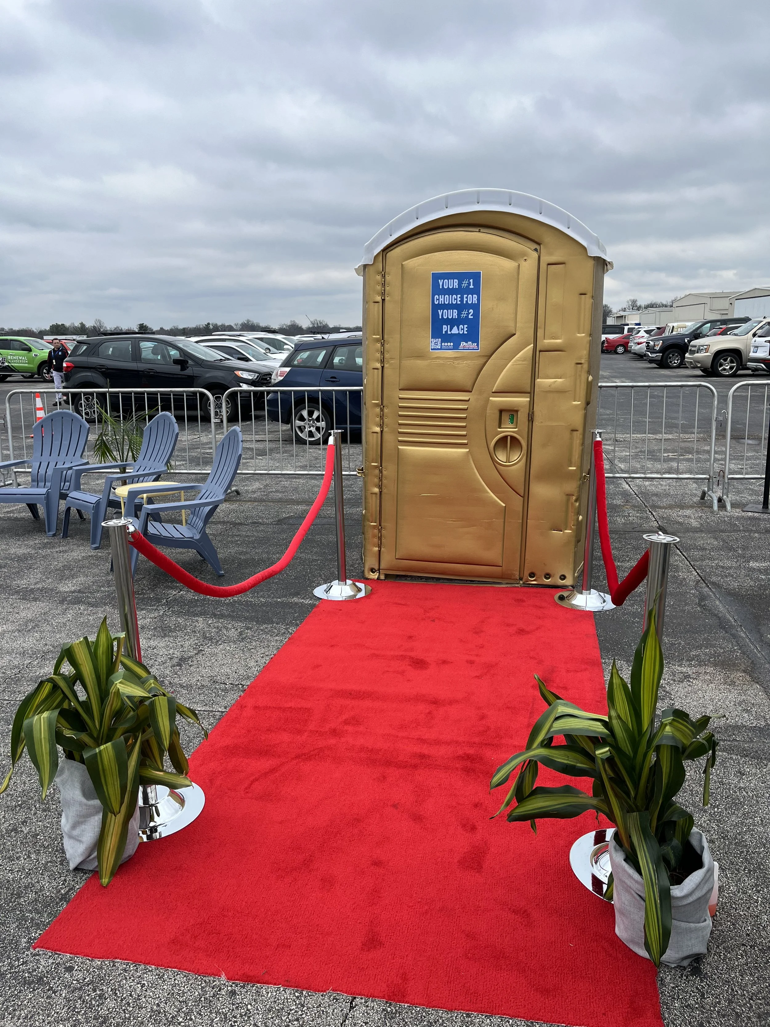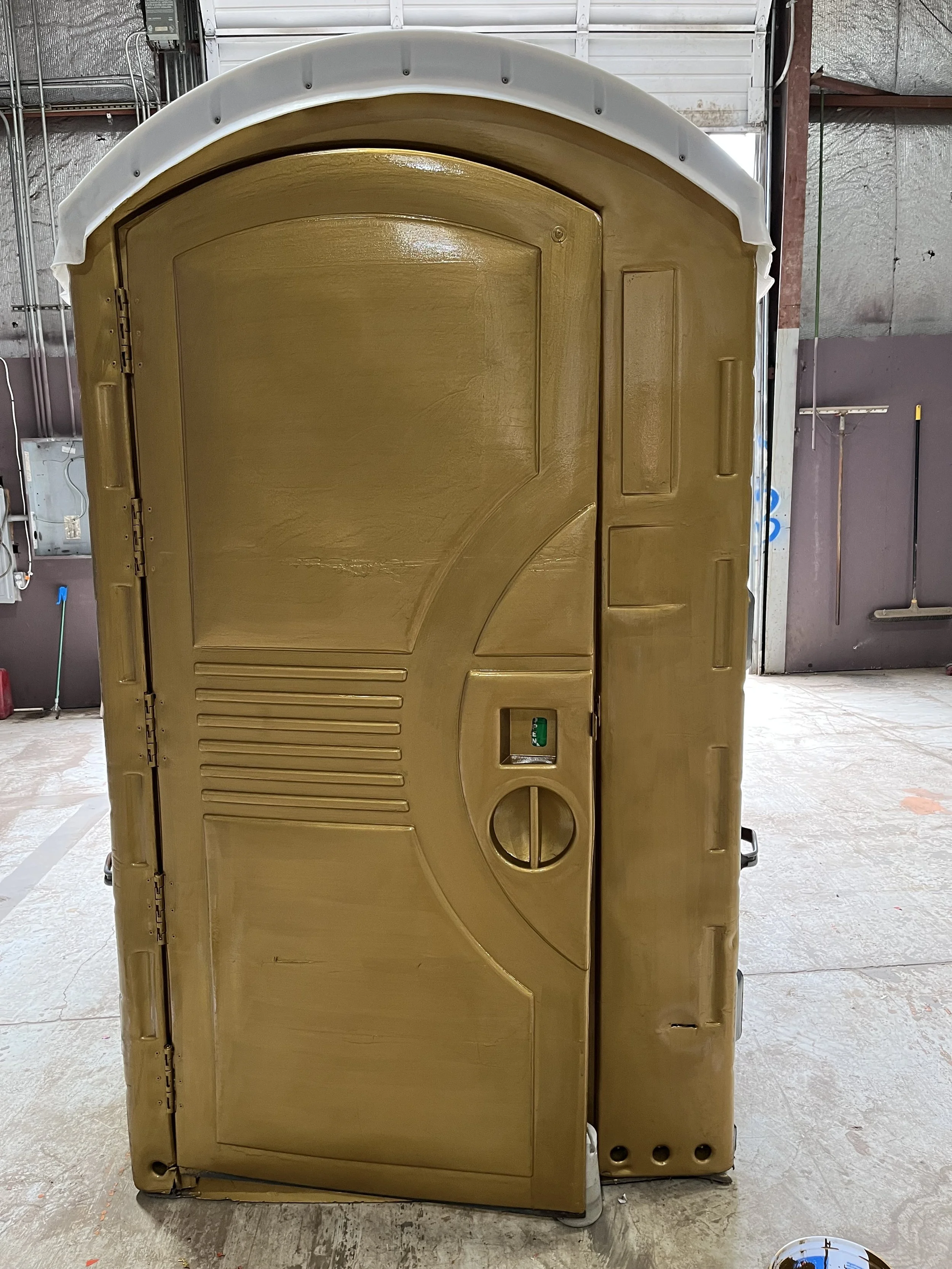 Real gold port-a-potty for the VIPs, at the Tailspin 2024 breweries event in Louisville, Ky.